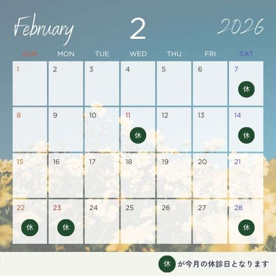 西葛西マリーナ歯科医院2026年2月の診療カレンダーとなります。