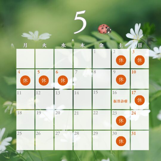 西葛西マリーナ歯科医院2026年5月の診療カレンダーとなります。